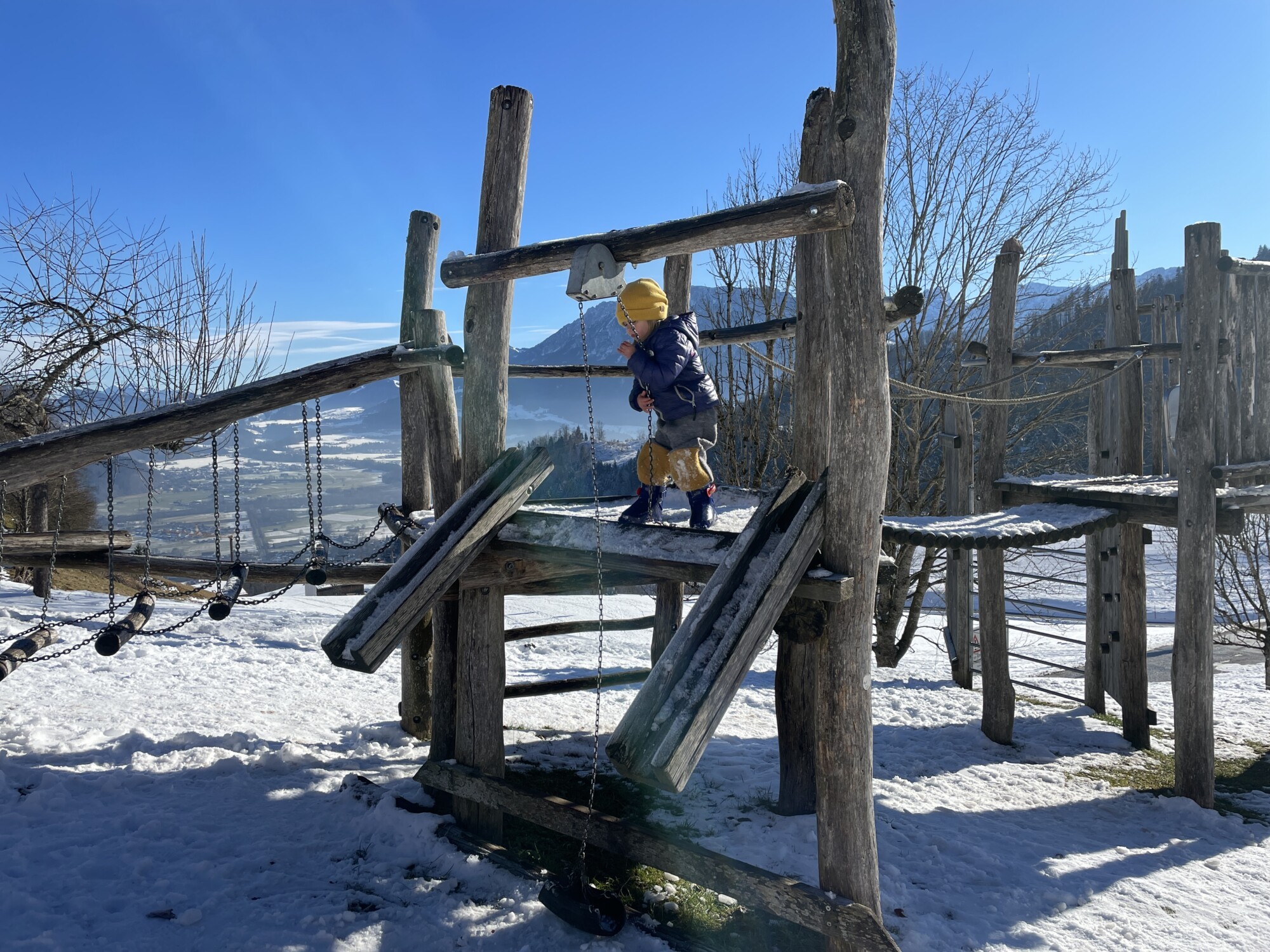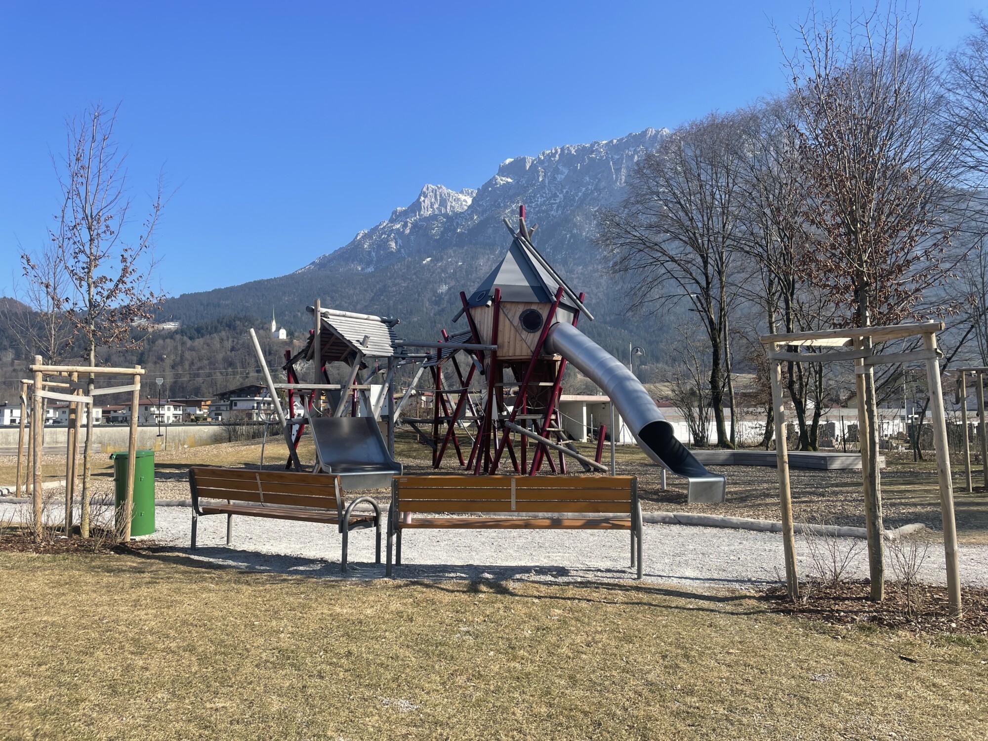 Alternativ radeln wir gerne rüber nach Ebbs. Dort kann man nach dem Eislaufen noch auf den super coolen Spielplatz im Dorfzentrum, der macht sogar im Winter Spaß.
