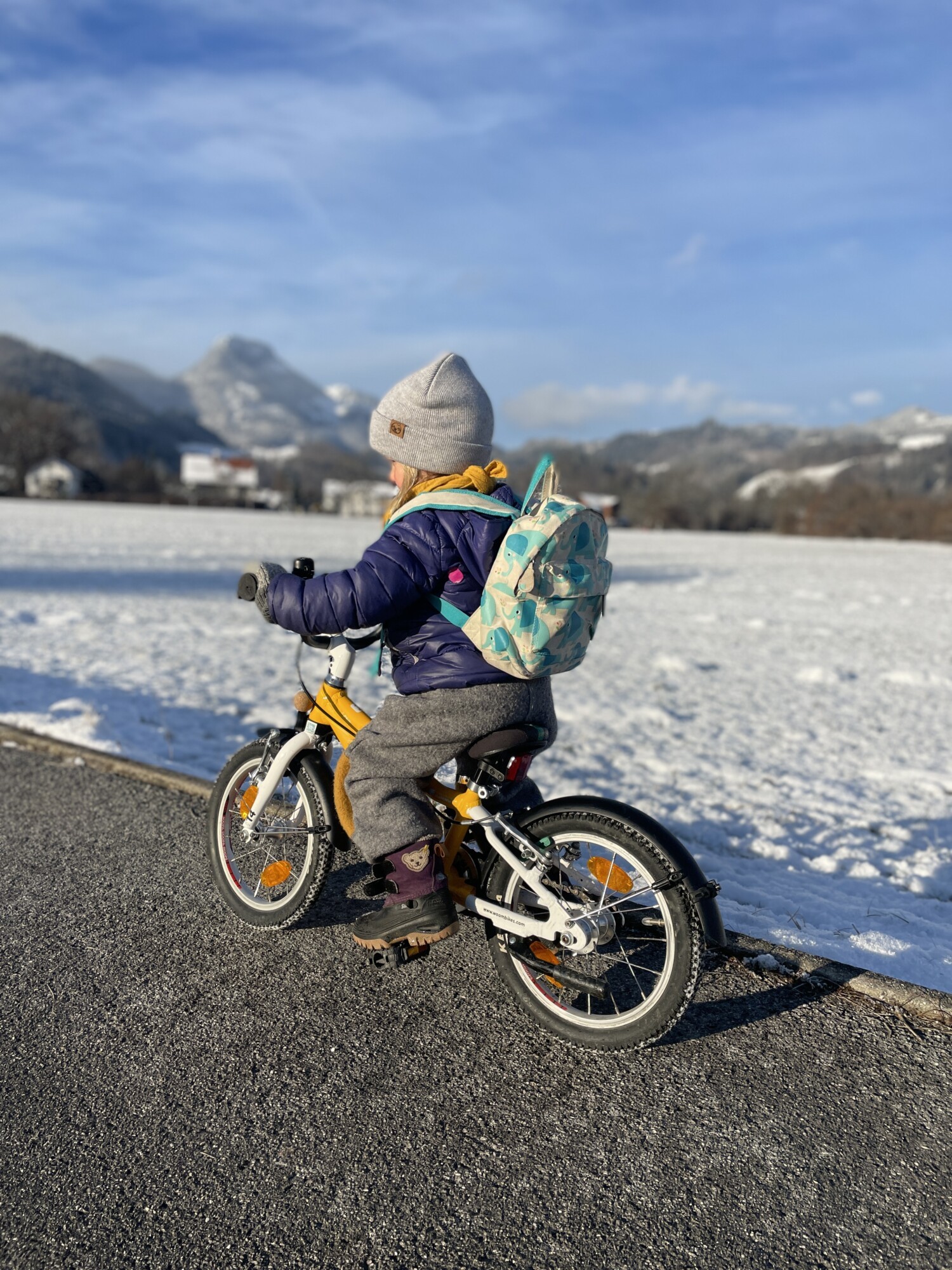 Packt die Radl ein! Wenn schon kein Shredden auf Ski, dann eben Shredden auf dem Bike. Das Kinderfahrrad ist mittlerweile echt ganzjährig dabei, man weiß ja nie, was kommt!