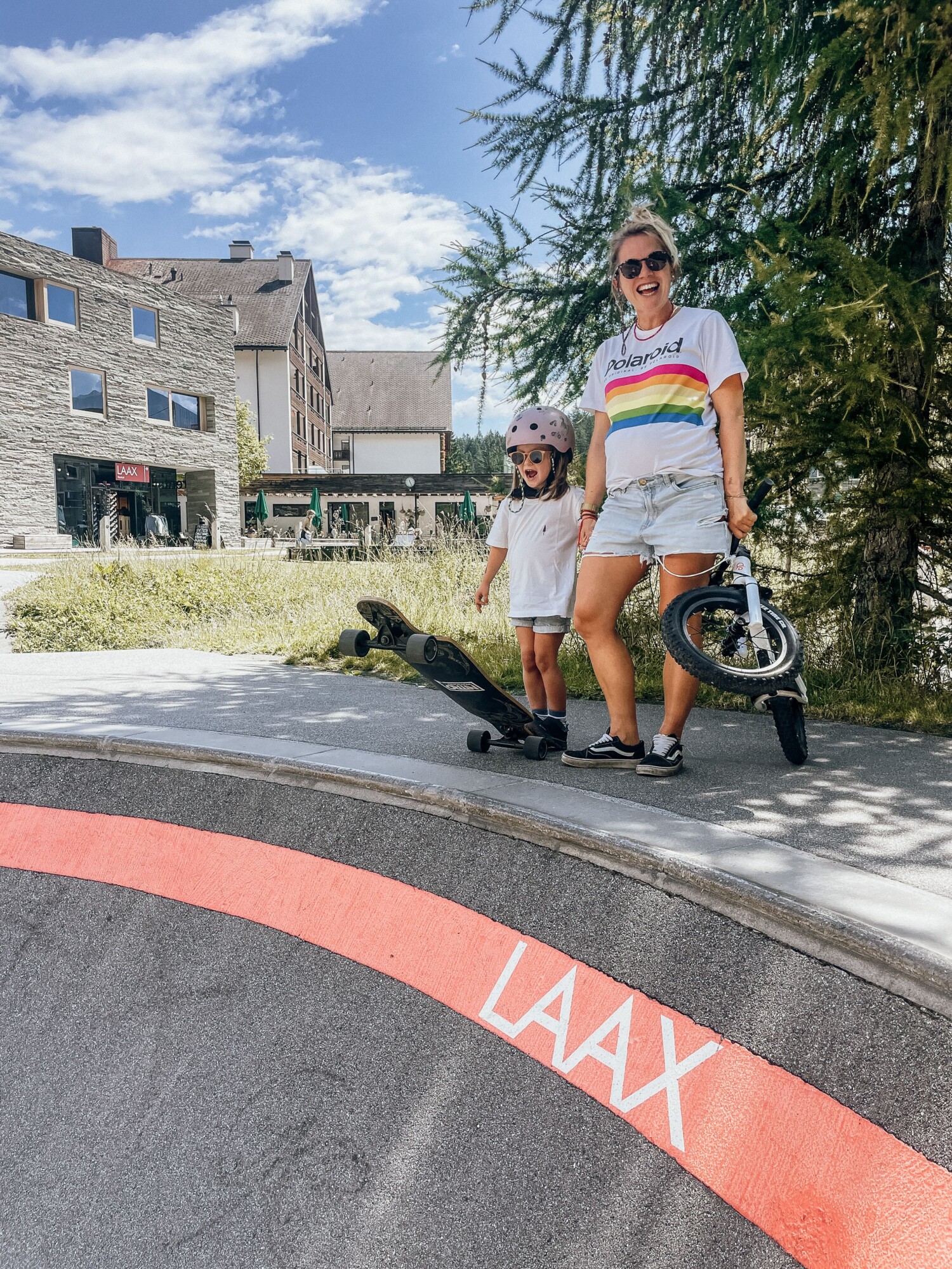 Dazu verfügt fast jeder Ort hier über einen Pumptrack, wo sogar im Tal weiter geübt werden kann.