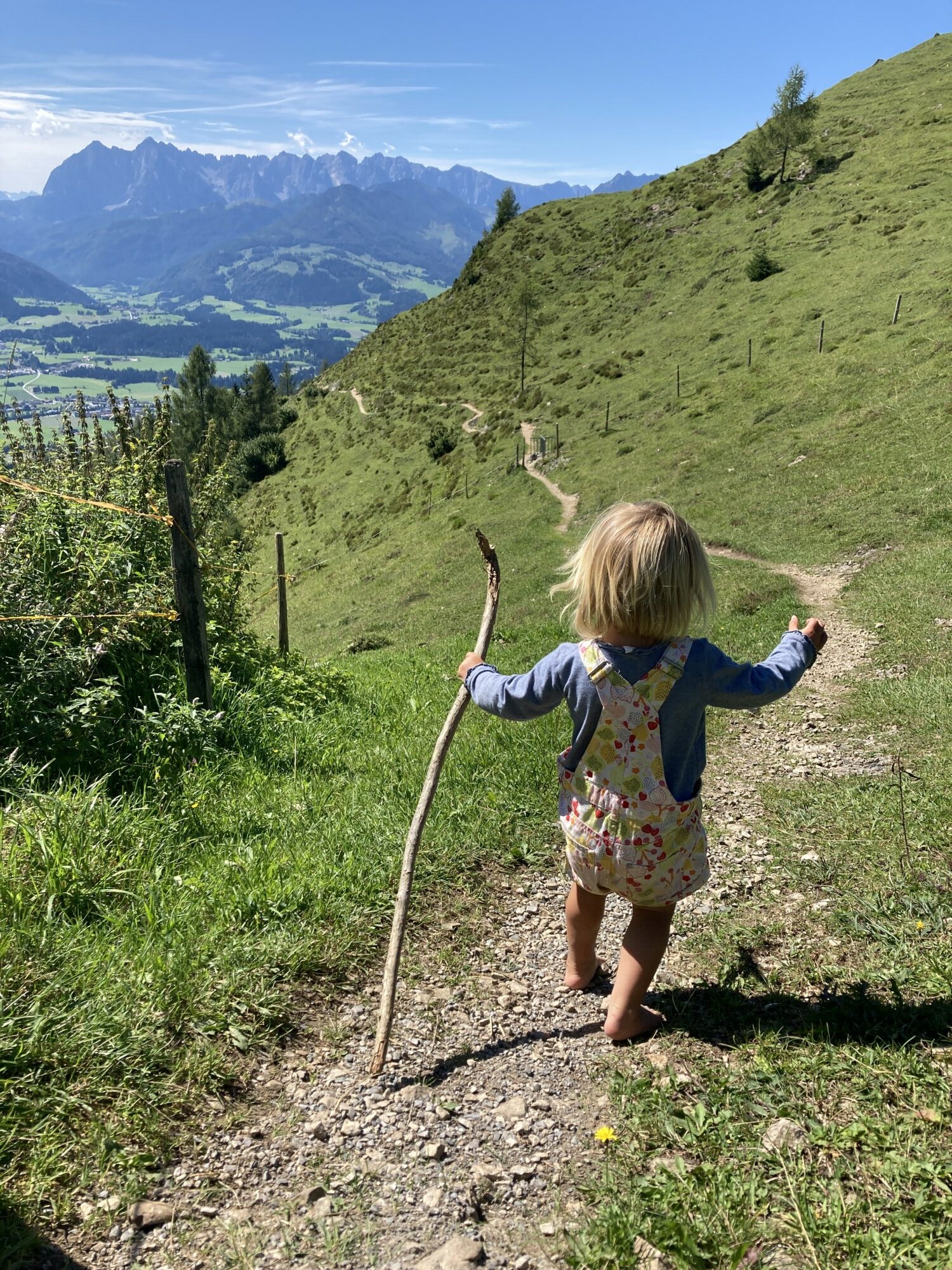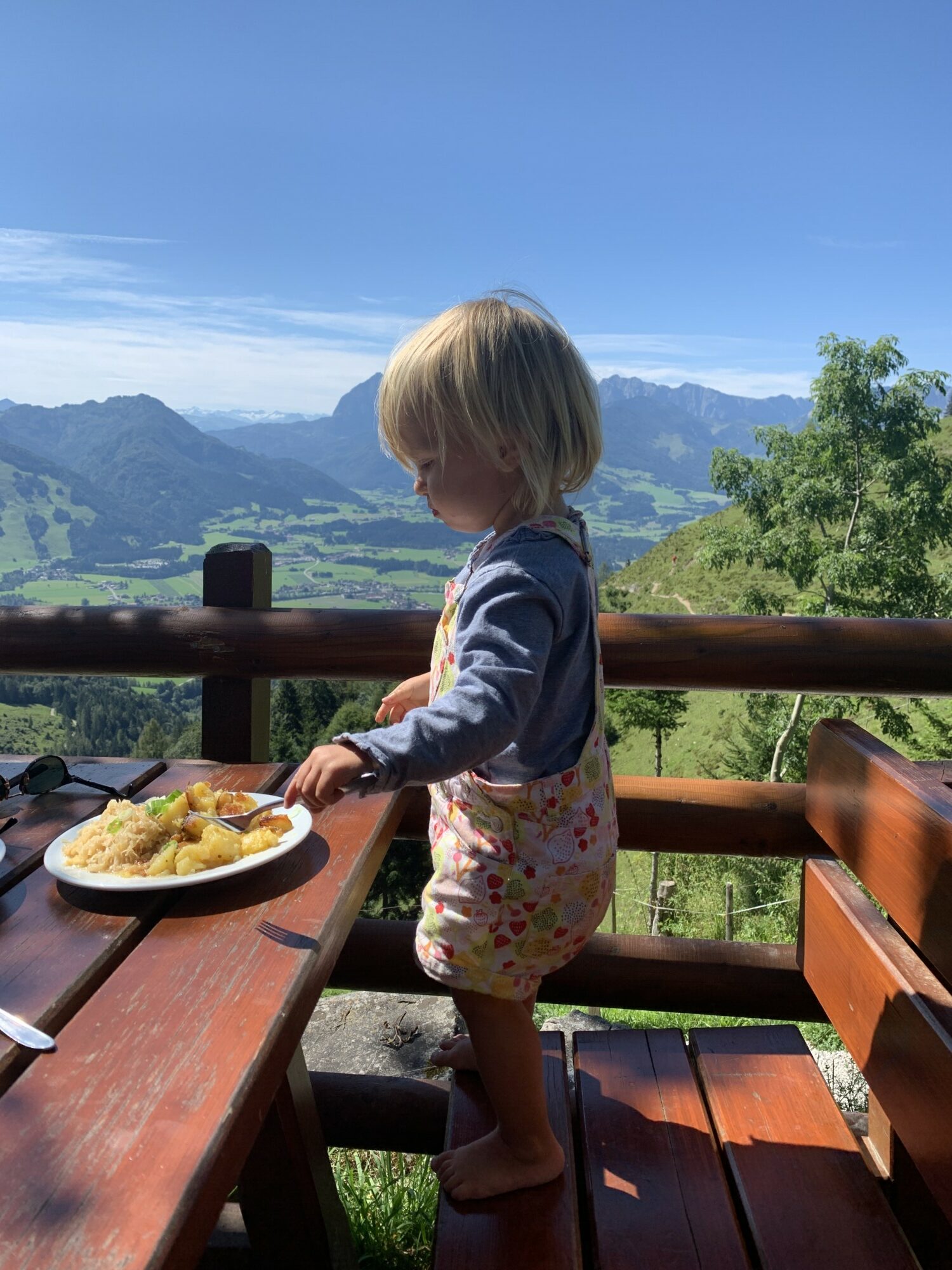 Von Kössen aus führt ein kindertauglicher Weg, der später in einen Steig mündet, hinauf zum Taubensteinhaus. Hier wartet eine wahnsinns-Aussicht auf den Wilden Kaiser, sowie ein Kinderspielplatz und brutal gute Küche. (Die Kaspressknödl!). Unbedingt noch zum Taubensee weiterwandern!