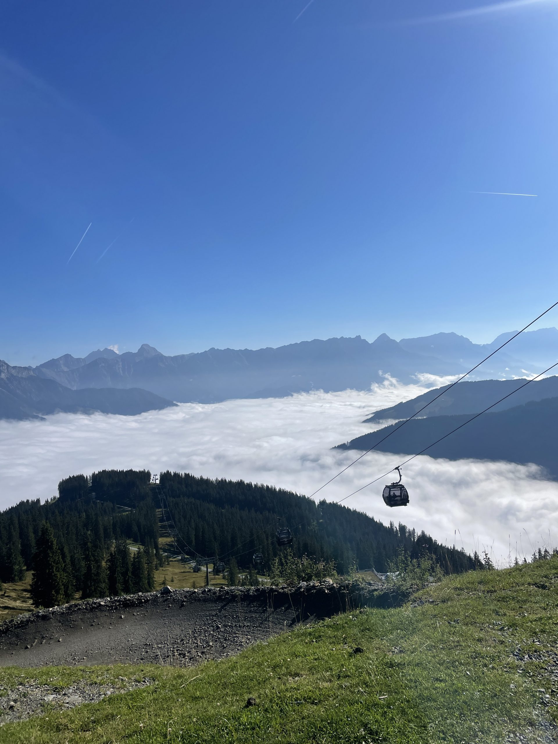 Glücklicherweise starten auch die legendären Bike-Trails an der Bergstation der Bergbahnen, sodass ein Elternteil biken gehen kann, während der andere mit Leo und Louise rätselt. Die Steinberg-Line ist eine wunderschöne Flowline, die sogar ich als relative Anfängerin mit großer Gaudi gleich doppelt hinuntergesaust bin.