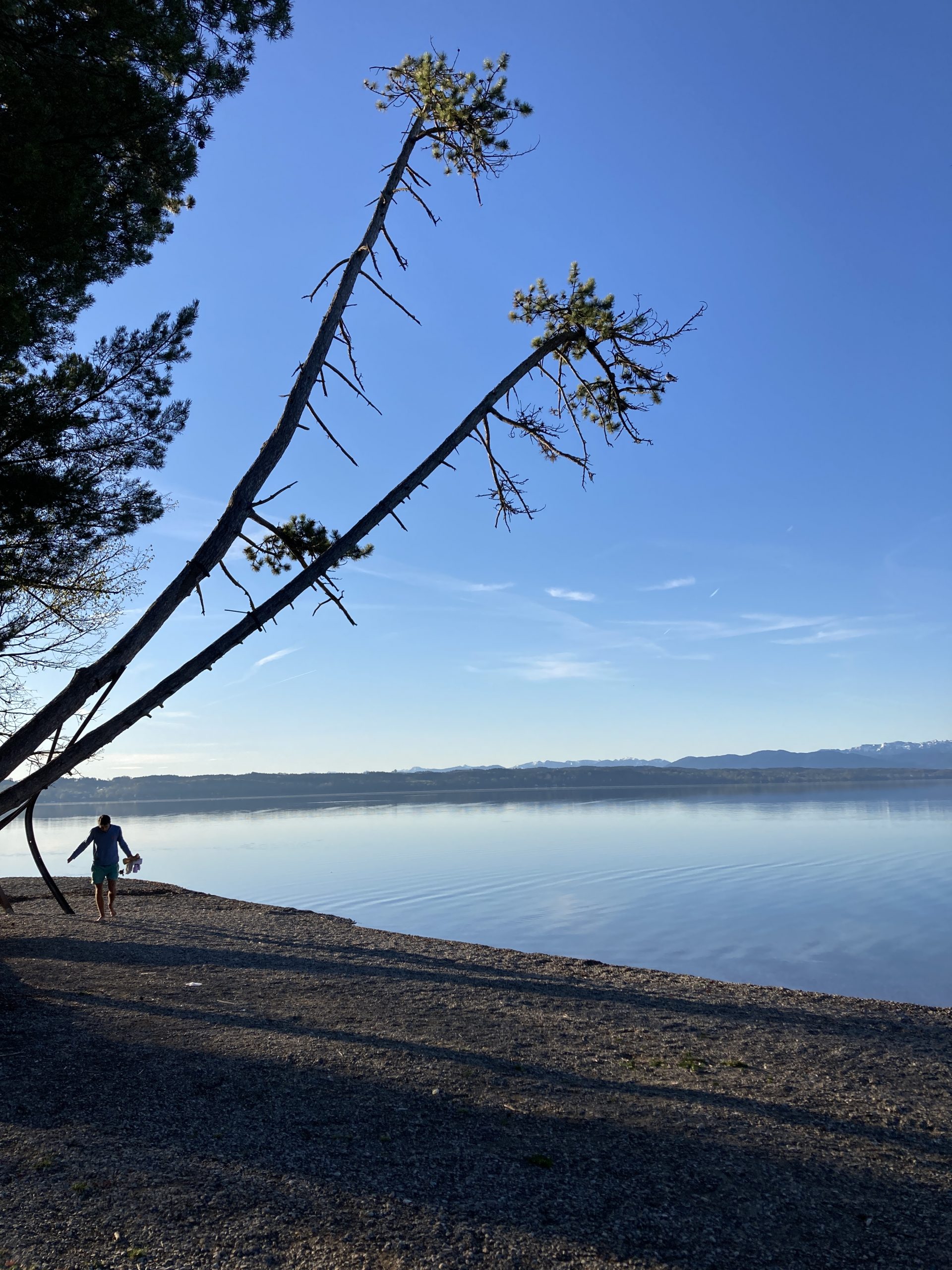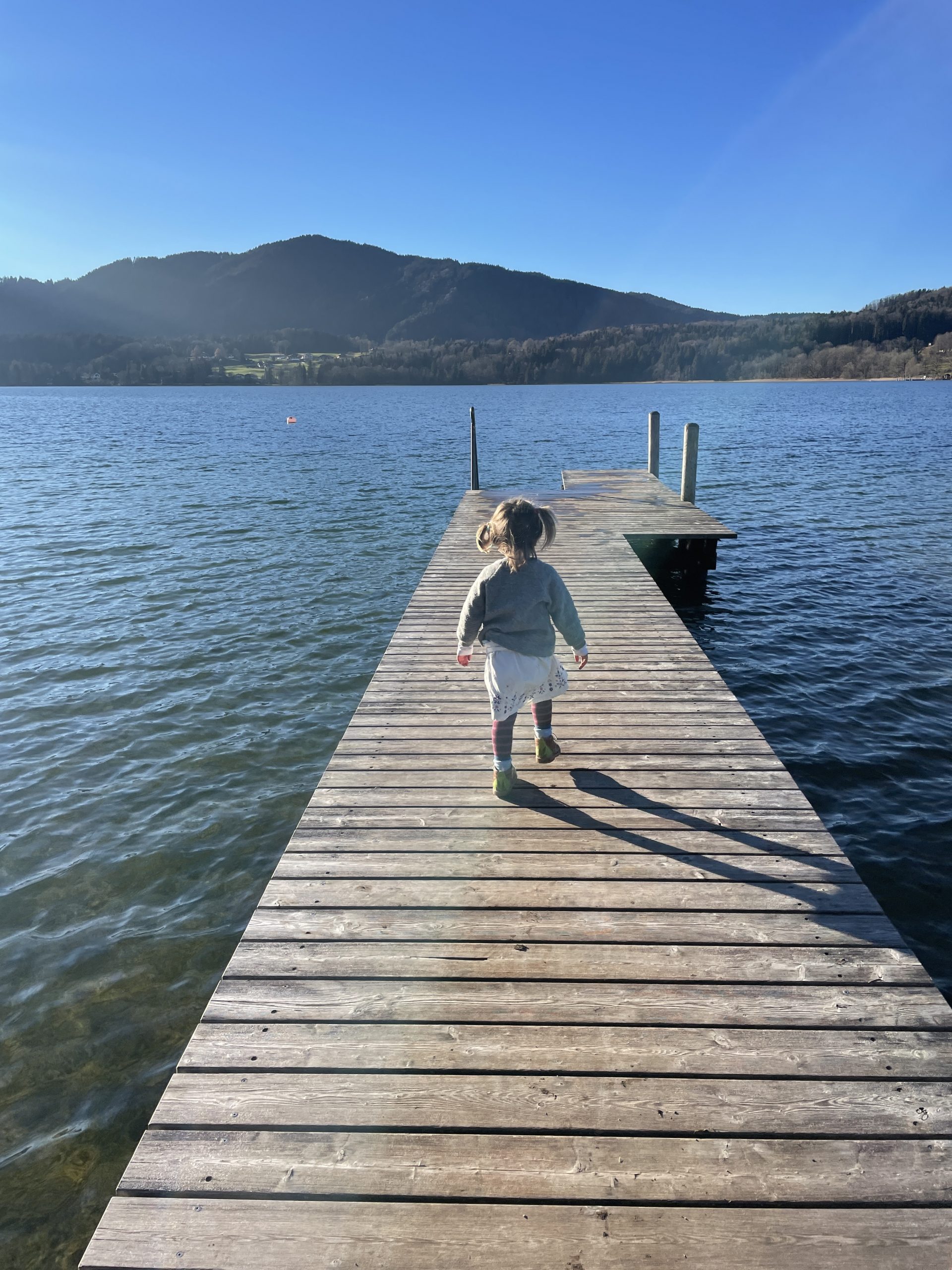 Wir sind gern am Spieplatz direkt am See in Gmund. Dort ist ein nettes Café nebenan und einige Holzstege laden zum Sonnenbaden ein. Von dort aus kann man direkt zu einer Wanderung starten, zum Beispiel in Richtung Gasthof Neureuth.