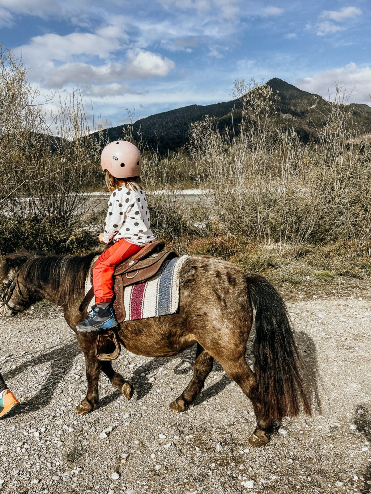 Wir waren auf dem Lamprechthof – einem Bauern- und Reithof und Louise hat’s so gefeiert! Nicht nur, weil sie auf dem Pony Lilly reiten durfte, sondern auch, weil der Spielplatz und Streichelzoo direkt vor der Türe lag und sie so schon vor dem Frühstück den Hühnern „Guten Morgen“ sagen konnte.
