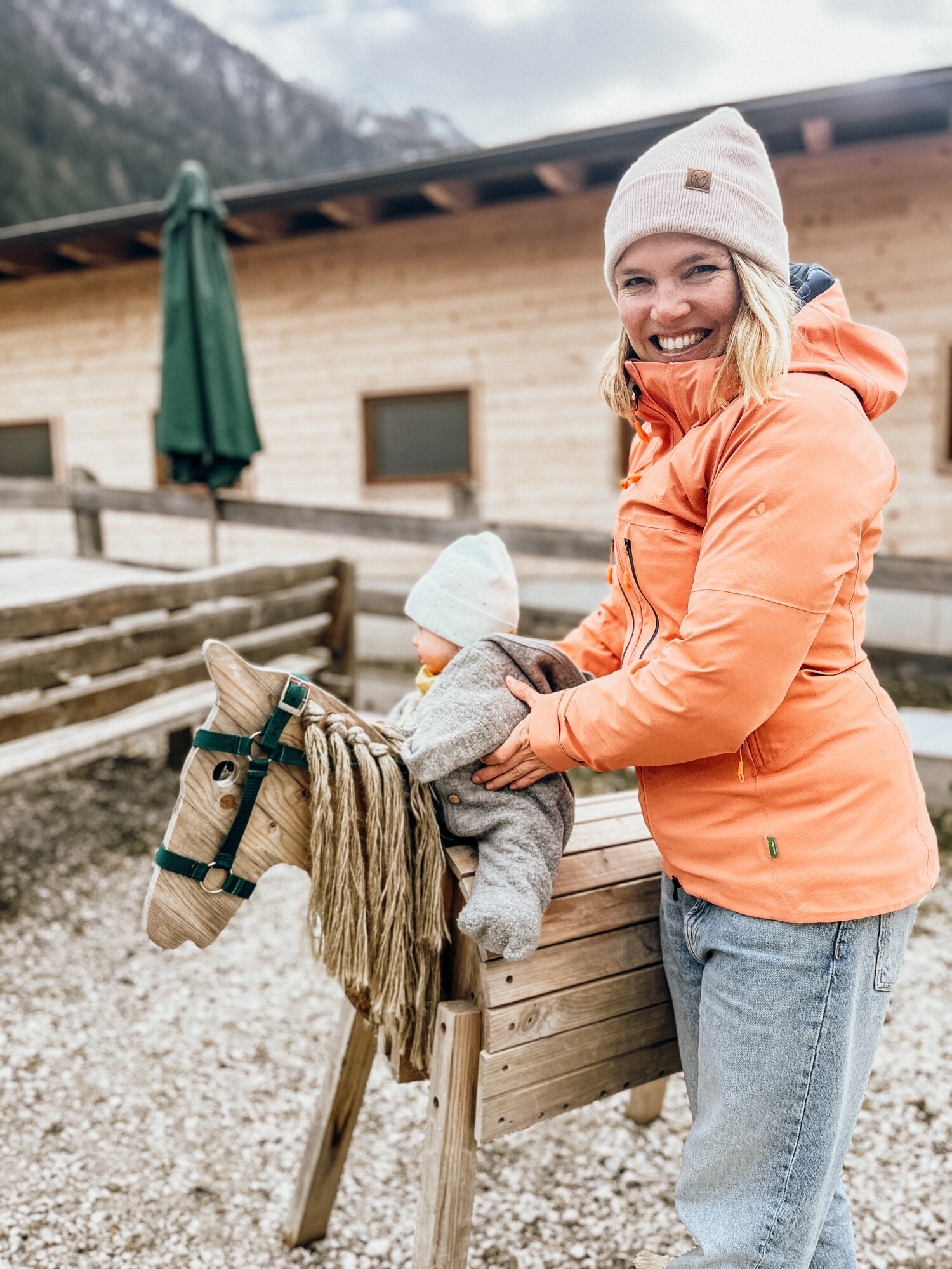 Winter-Reiten am nahegelegenen Pferdehof! Sie fand’s ja soo cool! ..und mit der Kinderbetreuung ging’s dann sogar noch zum Bauernhof – Tiere Füttern. Was ein Tag!